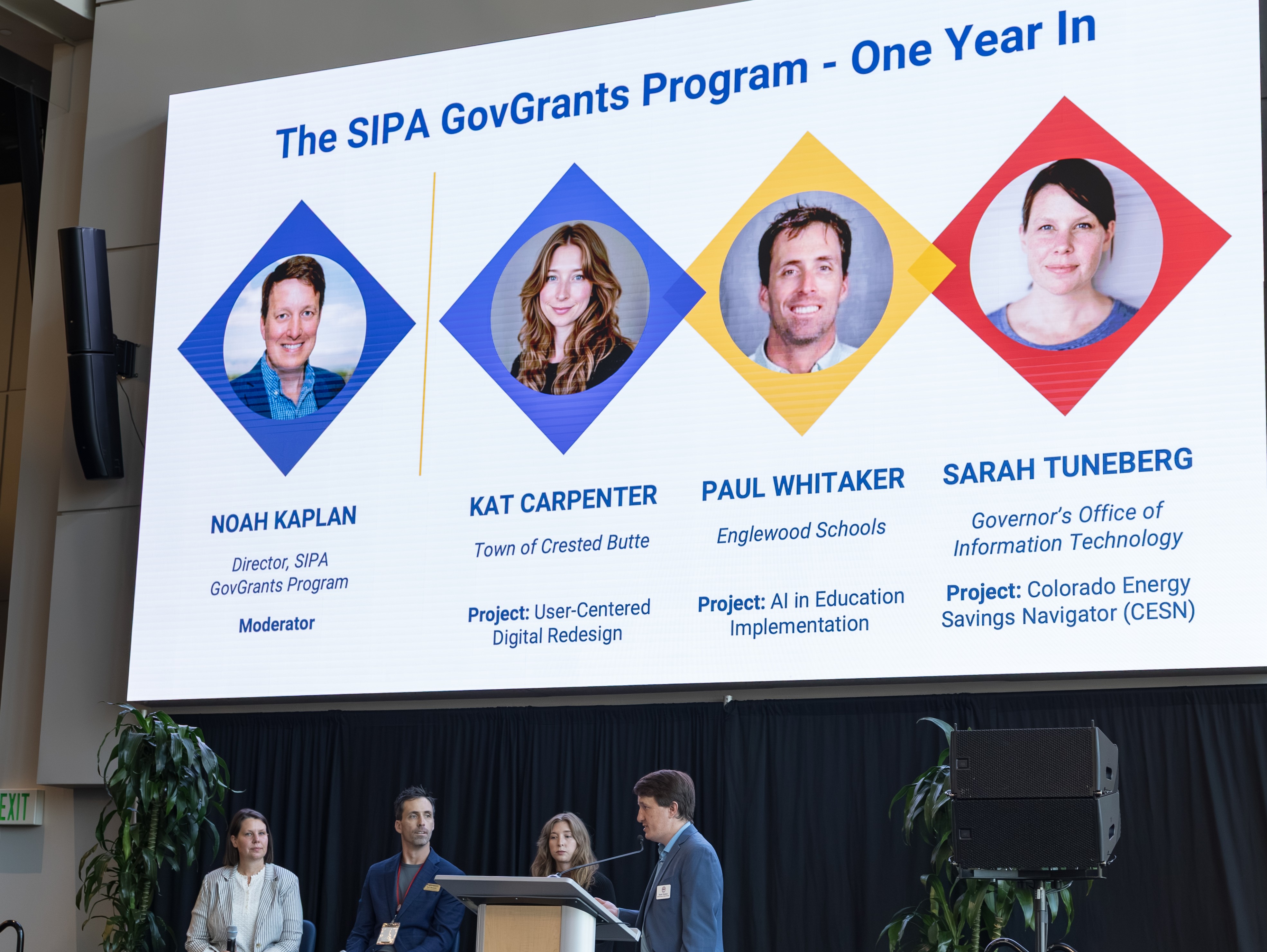 At SIPA's User Conference last month, SIPA GovGrants Program Director Noah Kaplan moderated a panel highlighting three of the program's recipients: Town of Crested Butte, Englewood Schools, and the Colorado Digital Service. Representatives from each grantee shared valuable insights on how they are using their grants to drive impact and what they believe helped their projects stand out in the highly competitive grant program.